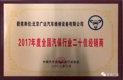 • 北京廣達蟬聯(lián)“2017年度全國汽保行業(yè)二十佳經(jīng)銷