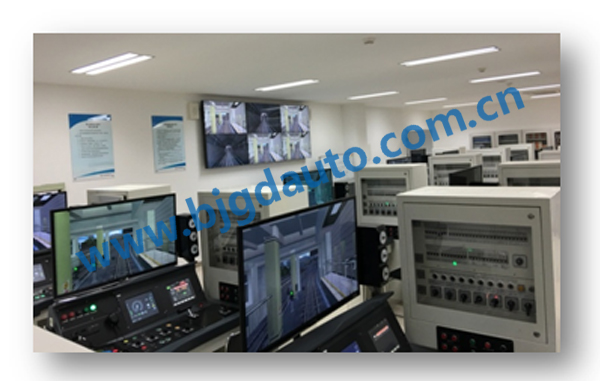 界面可顯示列車行車參數(shù)(如速度、最高預(yù)設(shè)、當(dāng)前駕駛模式)學(xué)員可操作與現(xiàn)場功能相同的駕駛臺進(jìn)行行車訓(xùn)練,駕駛臺與三維視景相連接,視景根據(jù)列車的行車位置不斷變化場景,使學(xué)員有真實(shí)行車的感覺??梢蕴峁└鞣N不同的訓(xùn)練環(huán)境,這些訓(xùn)練環(huán)境包括:不同的線路環(huán)境:彎道、坡道、道岔、折返線、庫線等;不同的氣候環(huán)境:晴天、雨天、雪天、霧天、沙塵、雷電等;不同的車輛參數(shù):載重、輪對磨損、編組等。三維視景軟件為整個(gè)仿真系統(tǒng)提供生動的視覺場景,界面層實(shí)時(shí)顯示線路、線路周圍視景以及軌旁設(shè)備的狀態(tài),根據(jù)列車運(yùn)行速度刷新周圍視景的顯示。