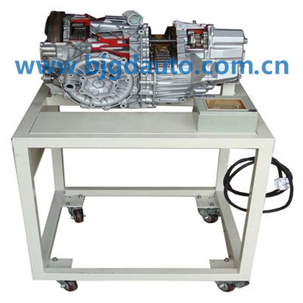 設(shè)備采用自動變速箱總成實物制作,變速箱的關(guān)鍵部位加以開放式解剖,解剖剖面進(jìn)行精細(xì)分色。配置射燈使液力變矩器、輸入輸出軸、太陽輪、行星齒輪、電磁閥等內(nèi)部結(jié)構(gòu)清晰可見。利用本實驗臺可以使學(xué)員輕松、真實地了解變速箱機械系統(tǒng)的組成、各部件的外形、各機構(gòu)彼此之間的連接關(guān)系,加深學(xué)生對變速箱機械系統(tǒng)組成和工作原理的理解,幫助學(xué)生理解抽象的控制理論。