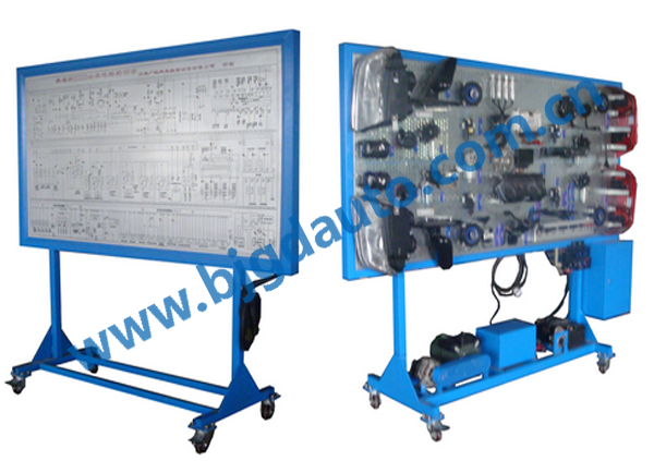設(shè)備采用原車電器電控系統(tǒng)器件組成,包括:發(fā)動(dòng)機(jī)電控系統(tǒng)、電源系統(tǒng)、起動(dòng)系統(tǒng)、照明系統(tǒng)、儀表系統(tǒng)、信號(hào)系統(tǒng)、音響系統(tǒng)、玻璃清潔系統(tǒng)、中控門鎖、玻璃升降器、電動(dòng)后視鏡、汽車?yán)群托铍姵氐?。外加系統(tǒng)主要包括: 故障設(shè)置系統(tǒng)、故障顯示裝置、驅(qū)動(dòng)電機(jī)、電源總開關(guān)、檢測(cè)端子以及安全防護(hù)裝置等。本臺(tái)架可以完整展示汽車電器電控系統(tǒng)的組成、結(jié)構(gòu)和工作原理,可以進(jìn)行電器電控系統(tǒng)常見故障的模擬、診斷和檢測(cè)實(shí)操訓(xùn)練,提高學(xué)生分析和解決實(shí)際問題的能力,適合中高等汽車院校與培訓(xùn)機(jī)構(gòu)對(duì)學(xué)員進(jìn)行汽車電器電控系統(tǒng)的教學(xué)需要。