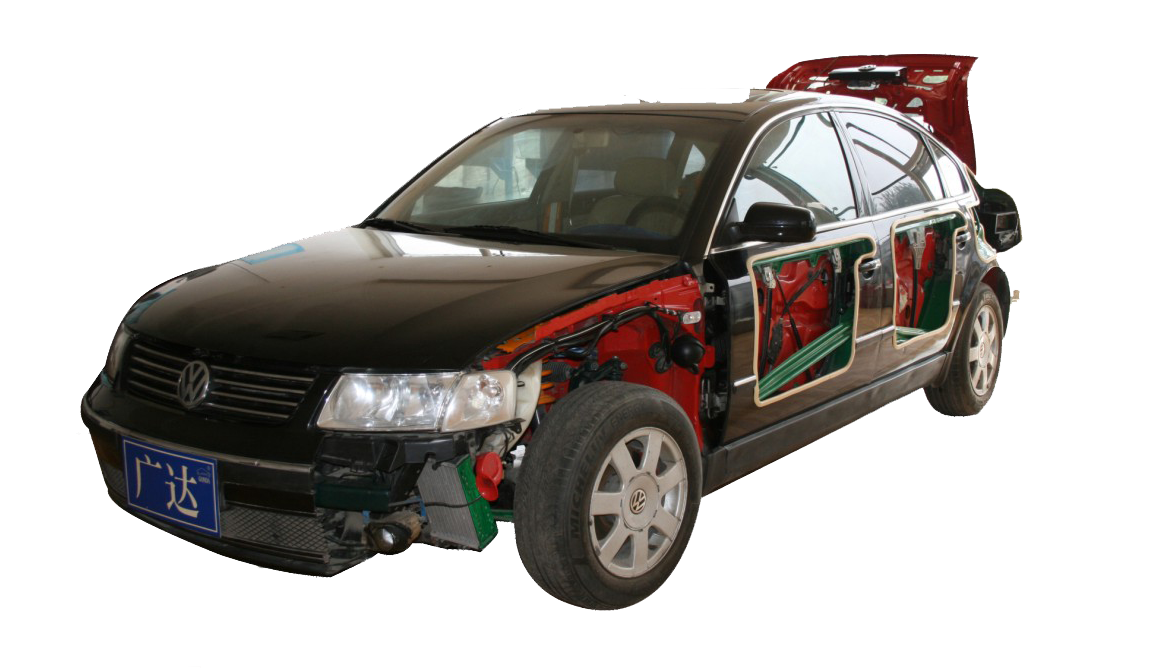 設(shè)備采用轎車整車改造制作而成, 在保持原車板金、機(jī)械、電器各個系統(tǒng)相對完整的基礎(chǔ)上,對車身覆蓋件和車架的關(guān)鍵部位進(jìn)行合理解剖,展示系統(tǒng)的內(nèi)部結(jié)構(gòu)。同時對電器電控系統(tǒng)進(jìn)行改造。臺架動力系統(tǒng)、傳動系統(tǒng)、空調(diào)系統(tǒng)、ABS防抱死制動系統(tǒng)具備正常啟動運(yùn)行功能的前提下,同時具備對電器電控系統(tǒng)的故障設(shè)置、檢測與分析等實(shí)訓(xùn)功能。外加系統(tǒng)主要包括:檢測端子、故障設(shè)置系統(tǒng)、故障顯示裝置等。