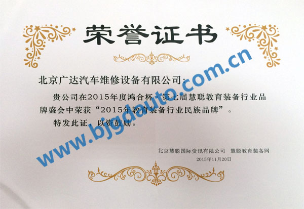 北京廣達(dá)榮獲2015年度教育裝備行業(yè)民族品牌